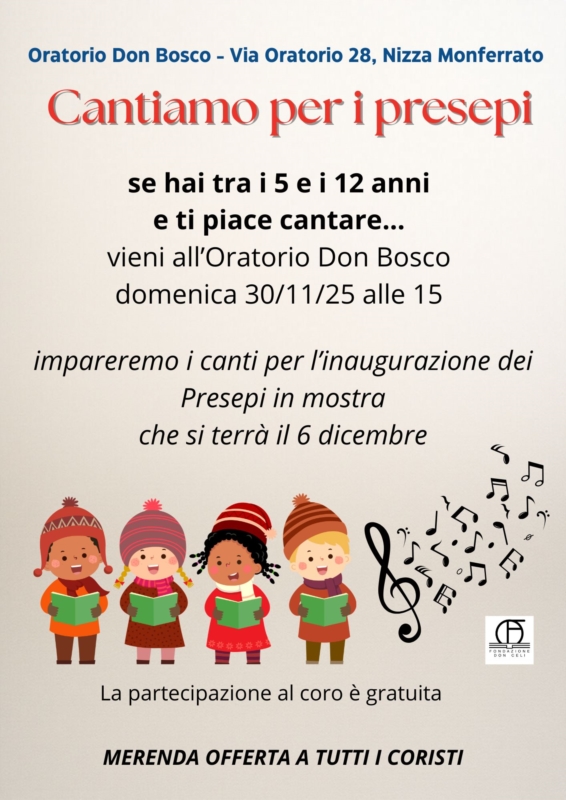 A Nizza Monferrato l'atmosfera natalizia si prepara con le note giuste! Per l'inaugurazione della 2^ edizione di "Presepi in Mostra", stiamo formando un Coro di Voci Bianche e cerchiamo piccoli talenti che amino cantare!