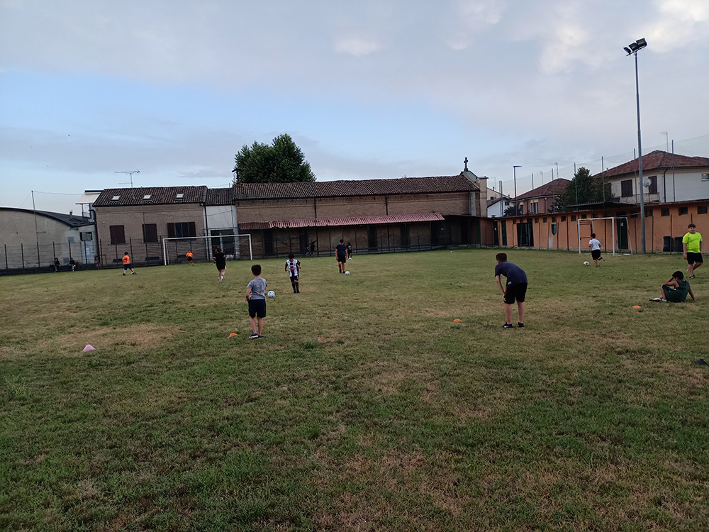 Dietro la bocciofila si trova un campetto in cui quasi quotidianamente i ragazzini vanno per tirar calci ad un pallone e organizzano partite al volo con chi c’è al momento.